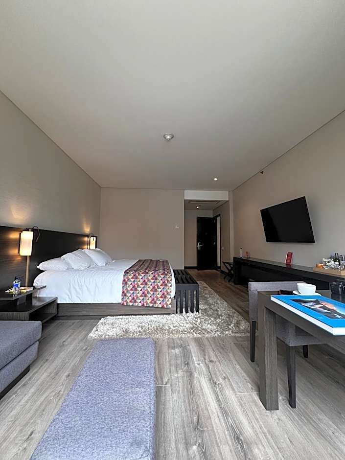 Features king size bed, air conditioning, heating, cable TV, mini-bar and private bathrooms with toiletries.